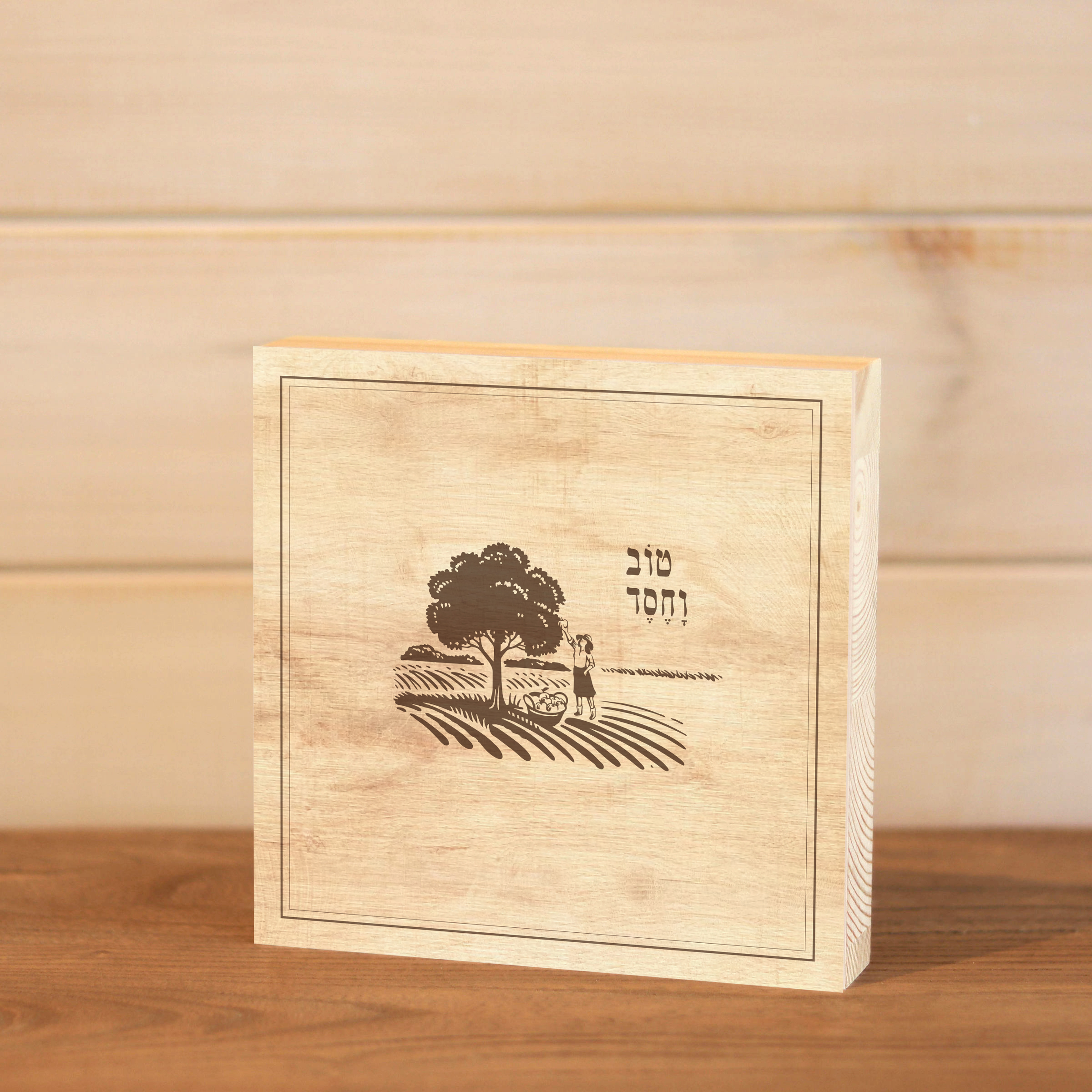בלוק עץ | דגם טוב וחסד ריבוע 15 ס״מ עובי 3 ס״מ