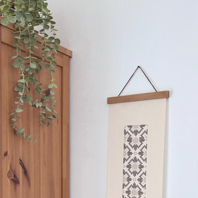 תלויה בין פסי עץ | בד קנבס ללא גימור במראה טבעי